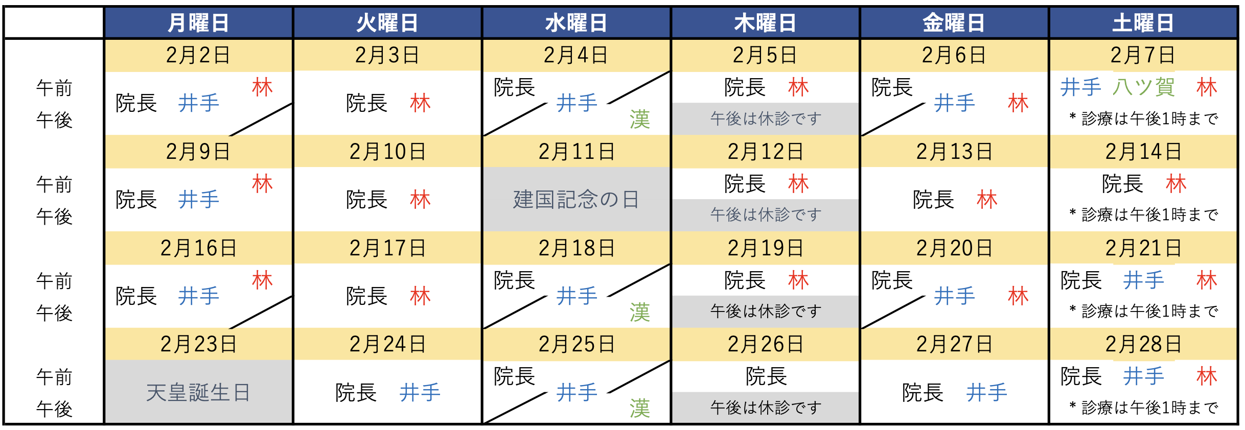 📅 2026年2月の診療スケジュールについて