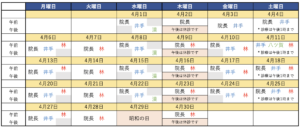 2026年4月の診療スケジュールについて